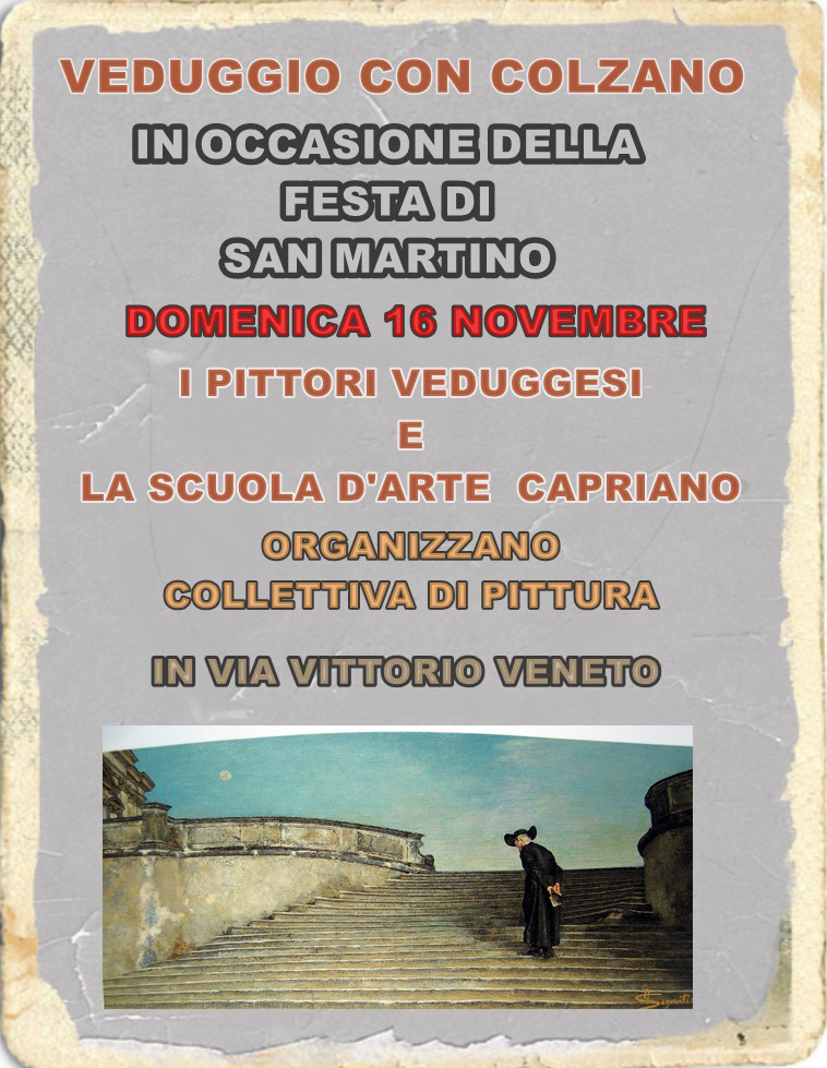 In occasione della Festa di San Martino il 16 novembre 2025 i Pittori Veduggesi e la Scuola d'arte di Capriano organizzano per tutta la durata della festa